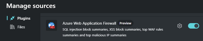 To use the Azure WAF integration in Copilot, the Azure WAF plugin in Security Copilot must be turned on and configured.