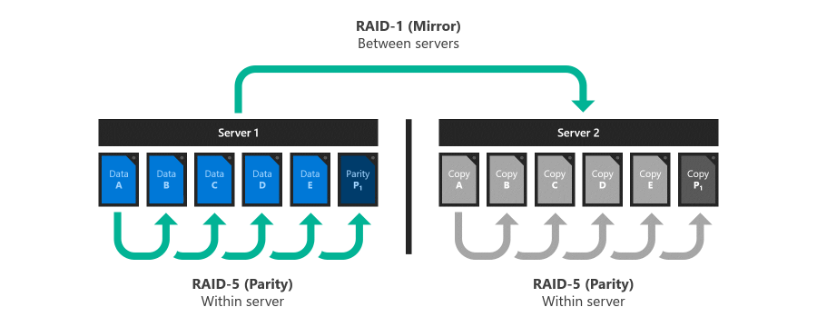 Storage Spaces Direct in Azure Local and Windows Server offers two resiliency options implemented in software, without the need for specialized RAID hardware: