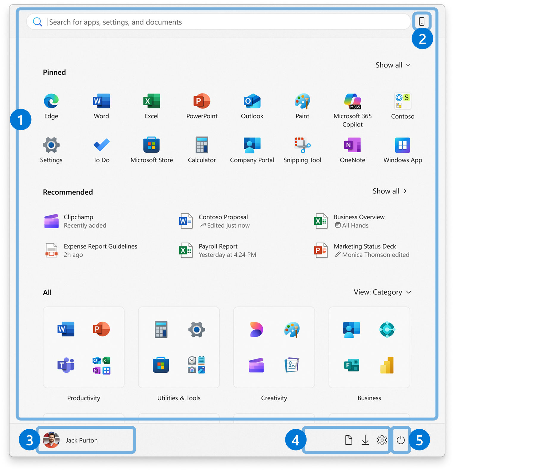 - The Recommended section is designed to enhance user productivity by providing quick access to frequently used apps, documents, and websites.