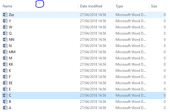 Filutforskeren skal kunne vise filene i alfabetisk rekkefølge, både stigende og synkende. Du kan se dette fungere her: