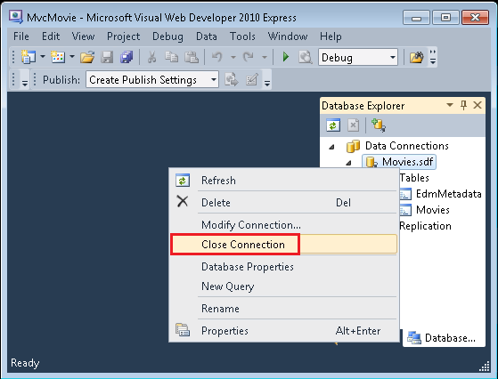 If you get an error when you double-click Movies.sdf, make sure you've installed Visual Studio 2010 SP1 Tools for SQL Server Compact 4.0. (For links to the software, see the list of prerequisites in part 1 of this tutorial series.) If you install the release now, you'll have to close and re-open Visual Web Developer.