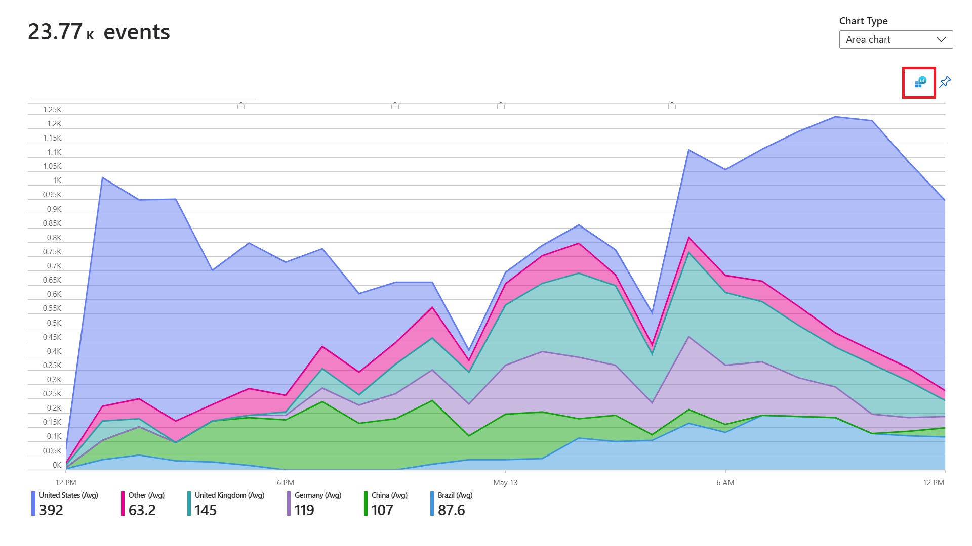 In the Users, Sessions, and Events tools, you can slice and dice custom events by user, event name, and properties. Whenever you're in any usage experience, select the Open the last run query icon to take you back to the underlying query.