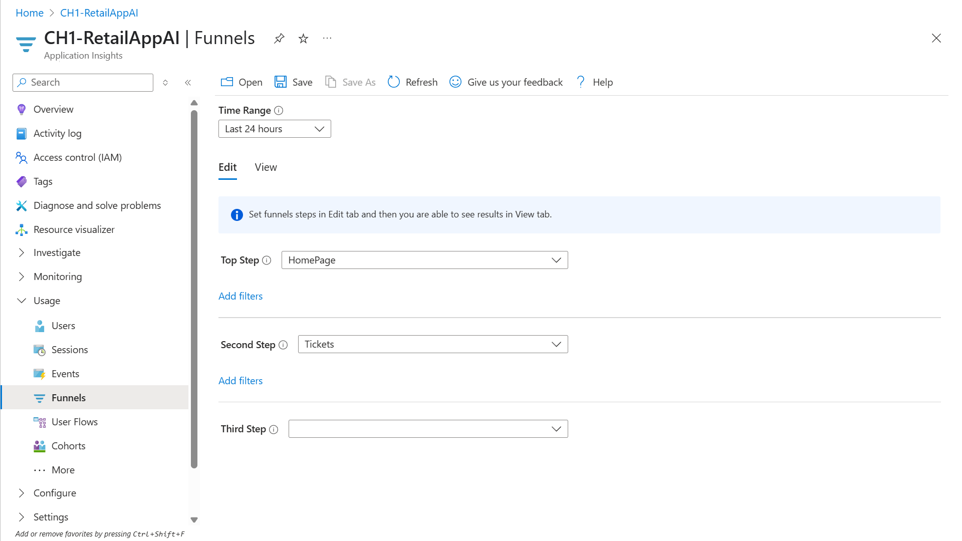 On the Funnels tab, select Edit.