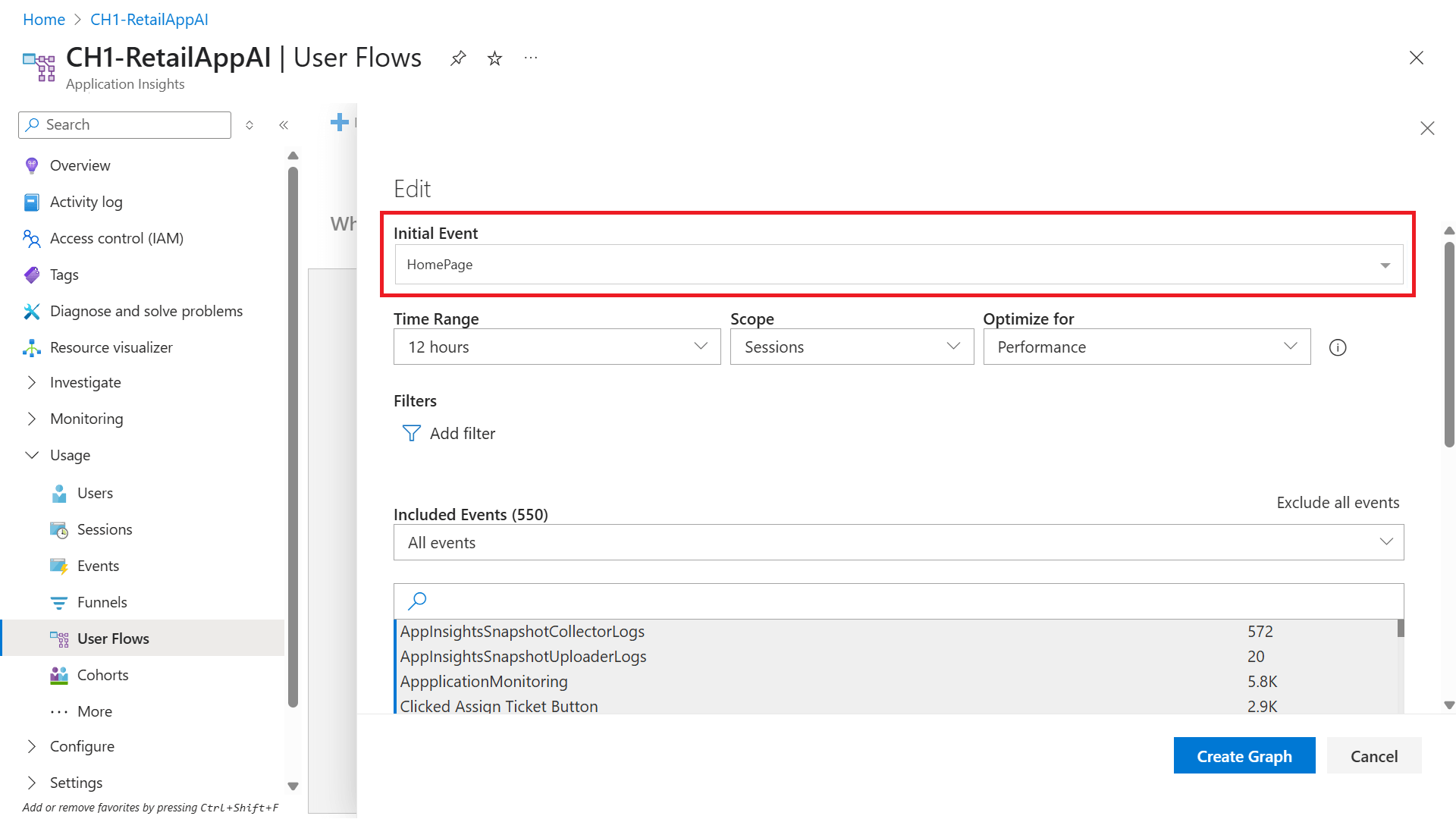 | Who used | Choose custom events, requests, and page views. |