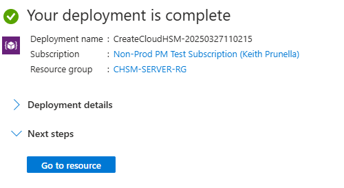 - Resource name conflicts: Ensure that your HSM name is unique in the region. If deployment fails with a naming conflict, try a different name.