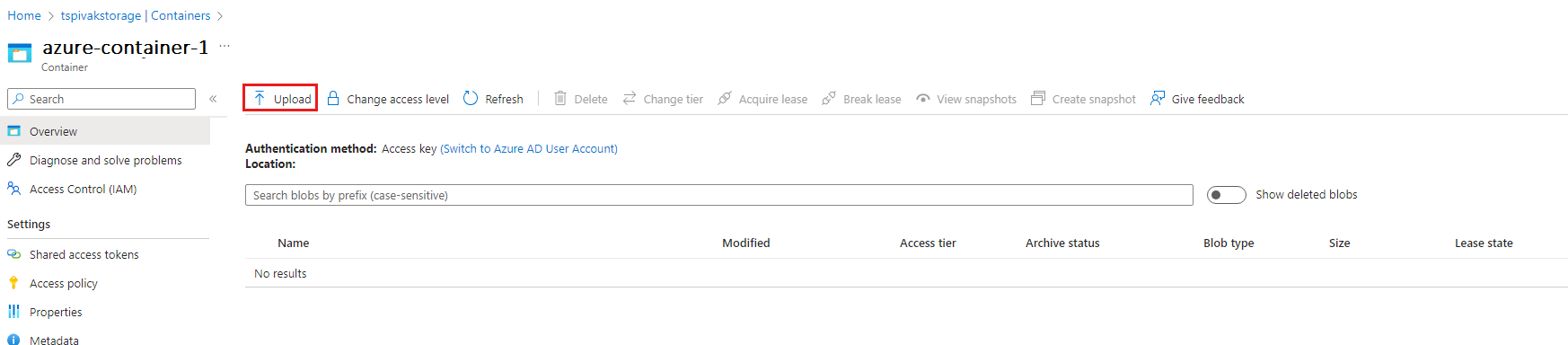 Upload a file to that container. Avoid uploading any file that might contain sensitive data.