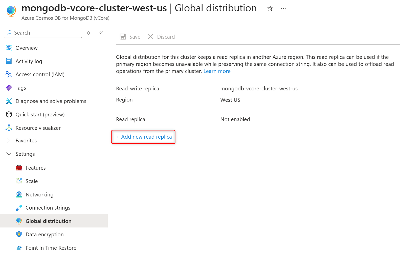 Select a region in the Read replica region. The replica cluster is hosted in the selected Azure region.