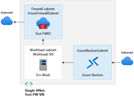For this article, you create a simplified single VNet with three subnets for easy deployment. For production deployments, a hub and spoke model is recommended, where the firewall is in its own VNet. The workload servers are in peered VNets in the same region with one or more subnets.