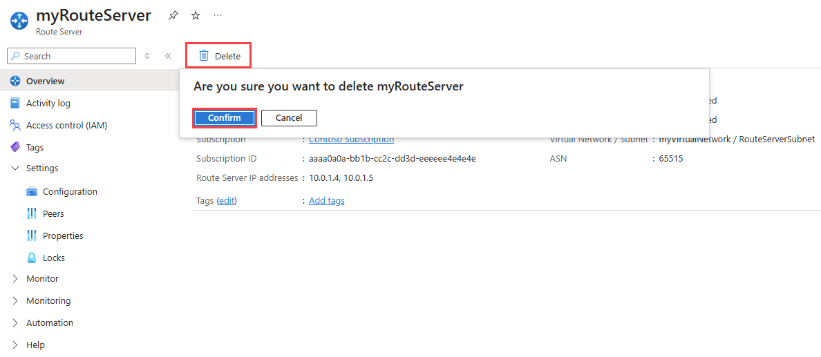 Select Confirm to delete the route server.