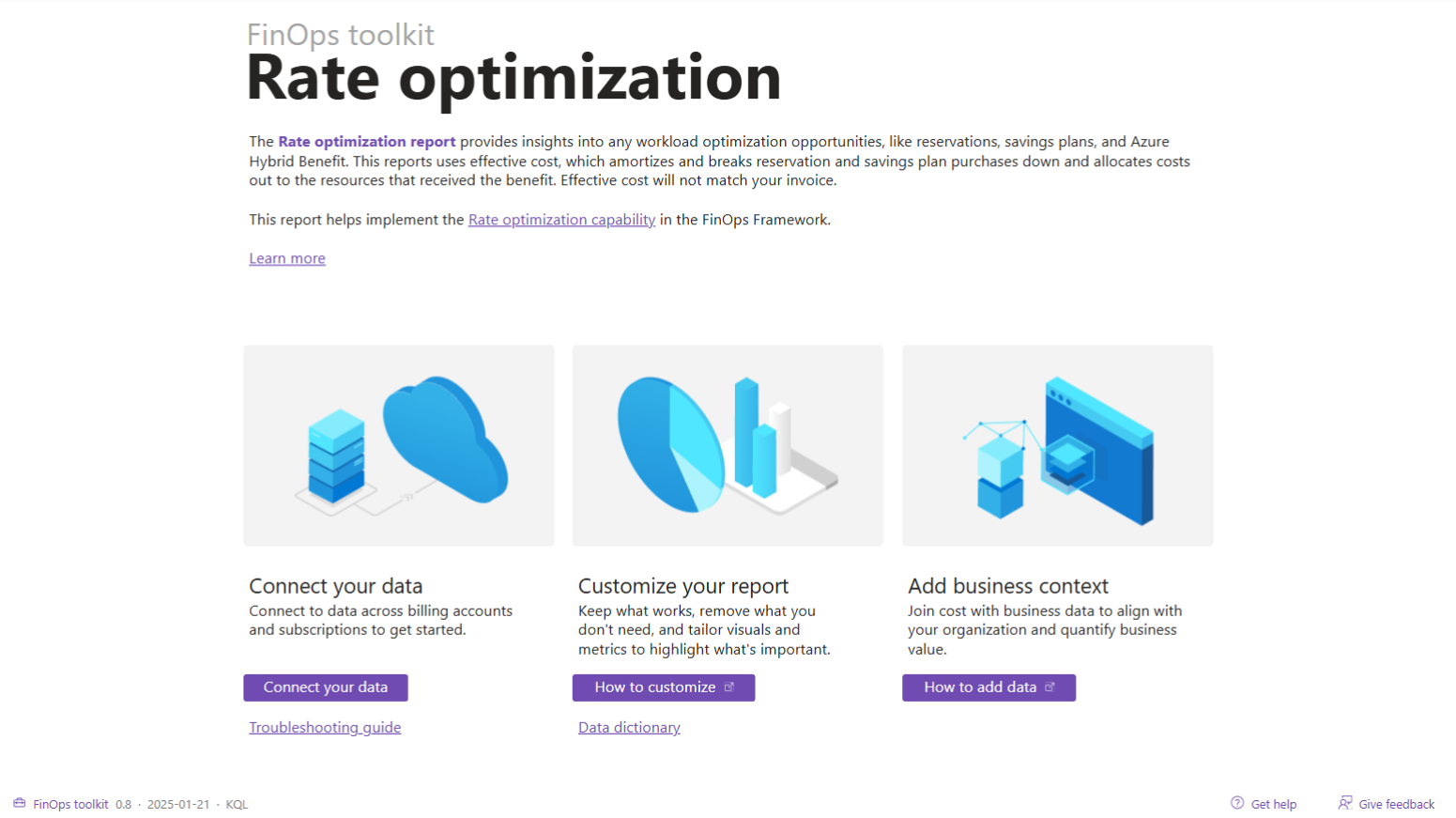 The Rate optimization report summarizes existing and potential savings from commitment discounts, like reservations and savings plans. This report enables you to: