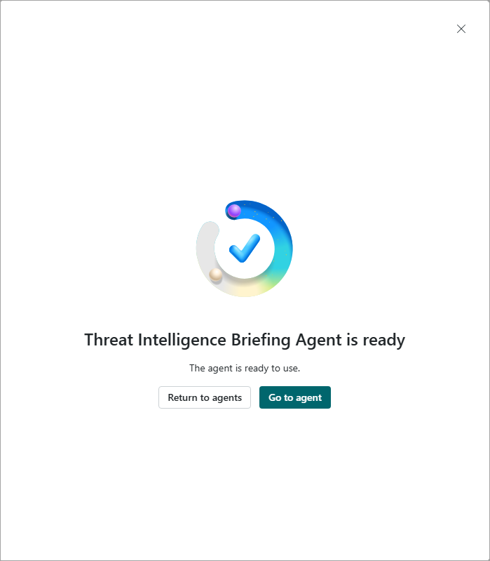 After the agent is created, select Return to agents to go back to the Agents page, or select Go to agent to go to the Threat Intelligence Briefing Agent overview page.