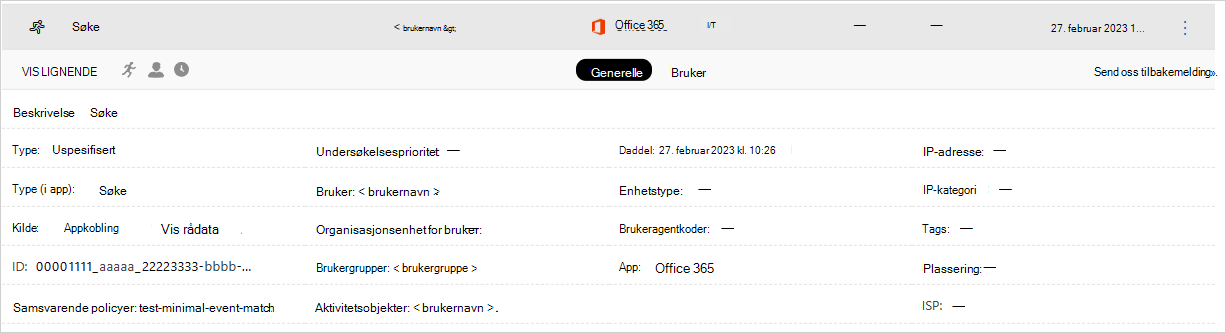 Aktivitetsloggen kan filtreres slik at du kan finne bestemte aktiviteter. Du oppretter policyer basert på aktivitetene og definerer deretter hva du vil bli varslet om, og gjør noe med det. Du kan søke etter aktiviteter som utføres på bestemte filer. Typen aktiviteter og informasjonen vi får for hver aktivitet, avhenger av appen og hva slags data appen kan gi.