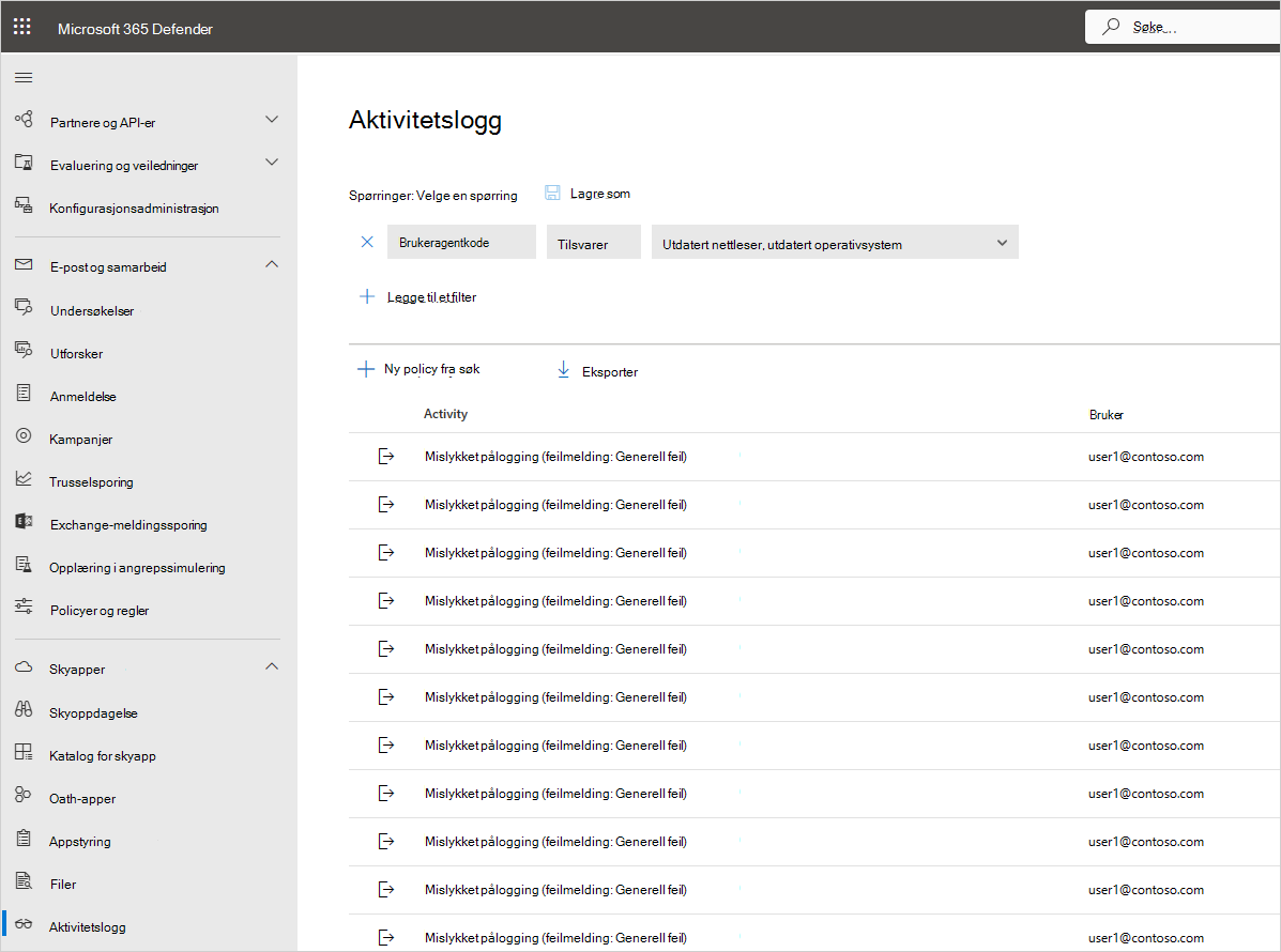 Du kan eksportere alle brukeraktiviteter til en CSV-fil.