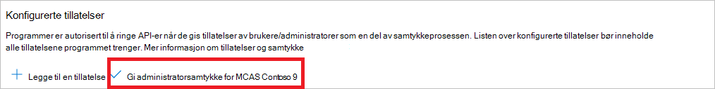 Hver gang du legger til tillatelse, må du velge Gi administratorsamtykke for at den nye tillatelsen skal tre i kraft.