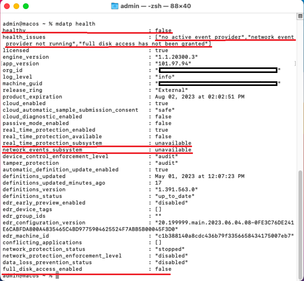 mdatp health