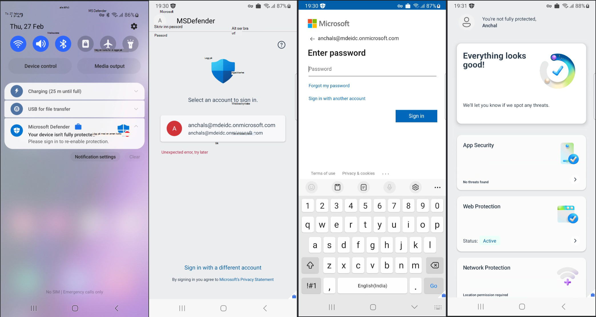 Hvis en policy brytes, eller brukeren har tilbakestilt passordet for Microsoft-kontoen, logges Microsoft Defender-appen automatisk ut og begynner å mislykkes i stille godkjenning (påloggingsforsøk i bakgrunnen).