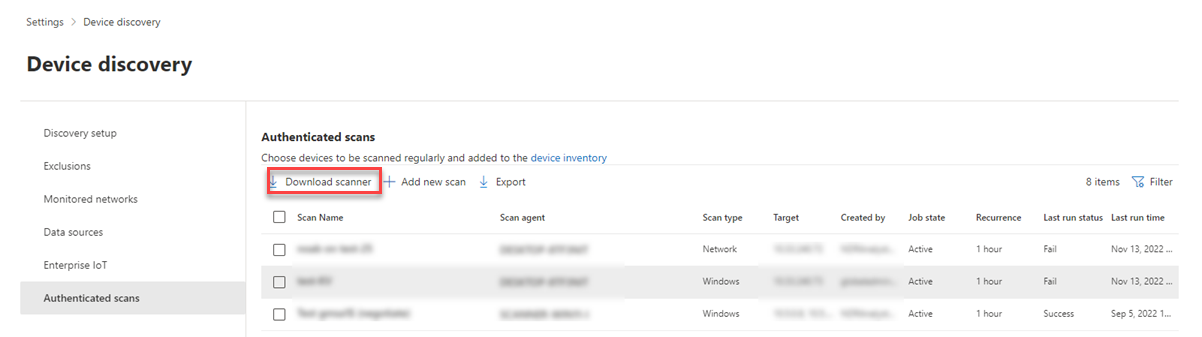 Gå til Godkjente>skanninger forenhetsoppdagelse> i Microsoft Defender-portalen.