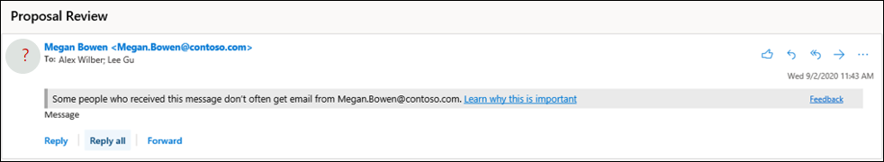 - Administratorer kan bruke falsk intelligensinnsikt eller leierens tillatelses-/blokkeringsliste til å tillate meldinger fra den forfalskede avsenderen.