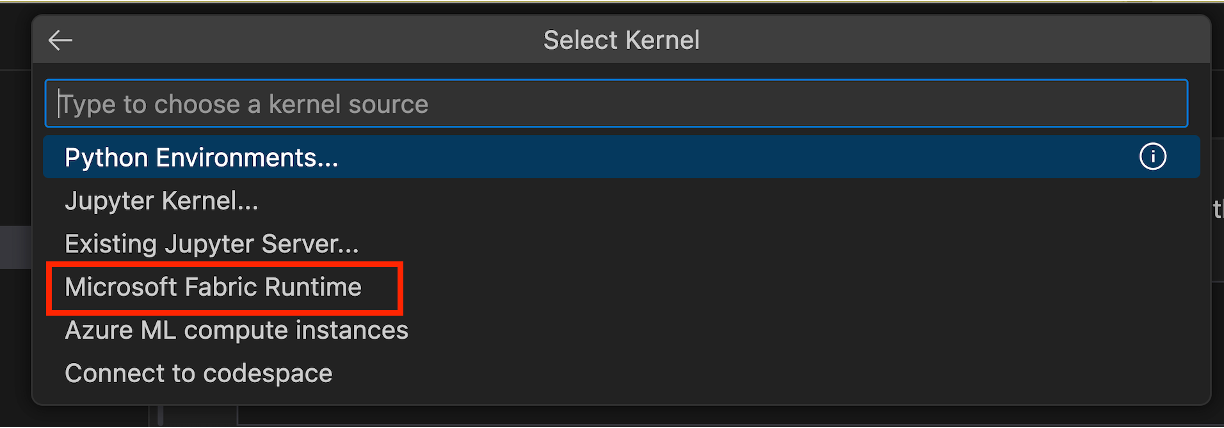 Pass på at du installerer Fabric Data Engineering VS Code-utvidelsen først. Hvis du vil ha mer informasjon, kan du se Installere Fabric Data Engineering VS Code-utvidelsen. Når utvidelsen er offentlig utgitt, automatiseres installasjonen.