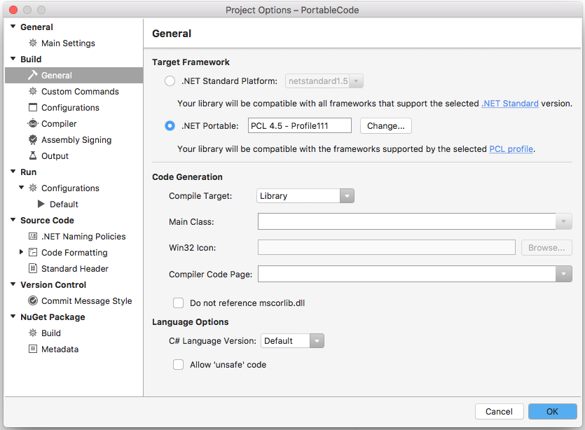 When a PCL is created in Visual Studio for Mac it is automatically configured with a Profile that works for Xamarin.iOS and Xamarin.Android. The PCL project will appear as shown in this screenshot: