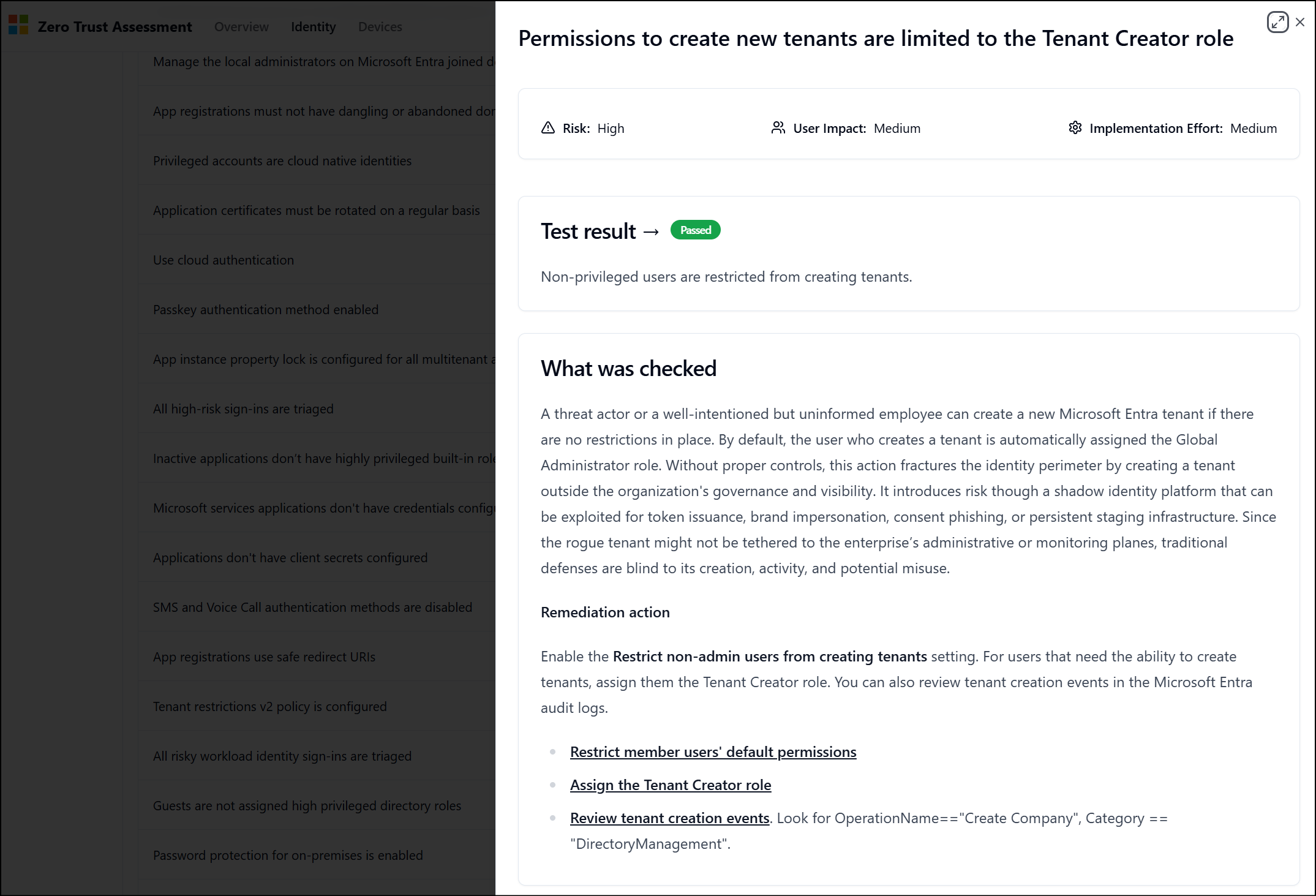 The Zero Trust Assessment checks your tenant configuration and recommends ways to improve security as described in our overview.