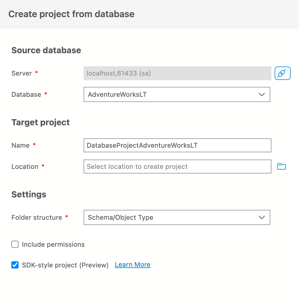 Instead of starting from an empty project, you can quickly populate a SQL Database Project with the existing objects from a database.