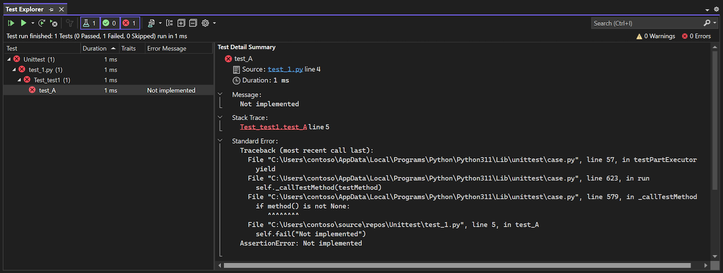This article provides a brief outline of unit testing capabilities in Visual Studio with Python. For more on unit testing in general, see Unit test your code.