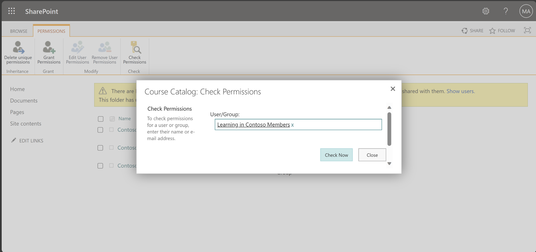 For more information, see Sharing and permissions in the SharePoint modern experience.