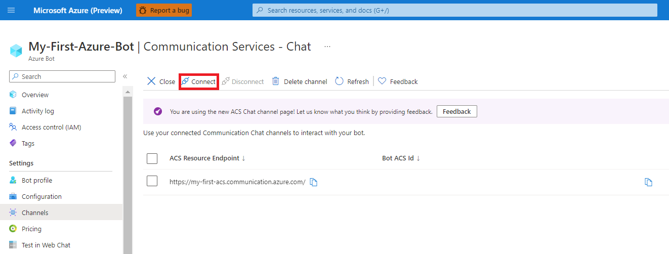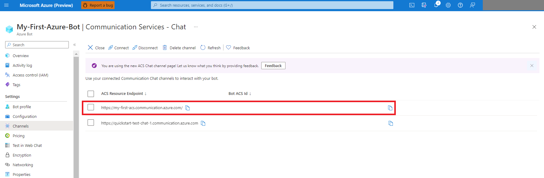 - Het Communication Services-chatkanaal voor de bot inschakelen