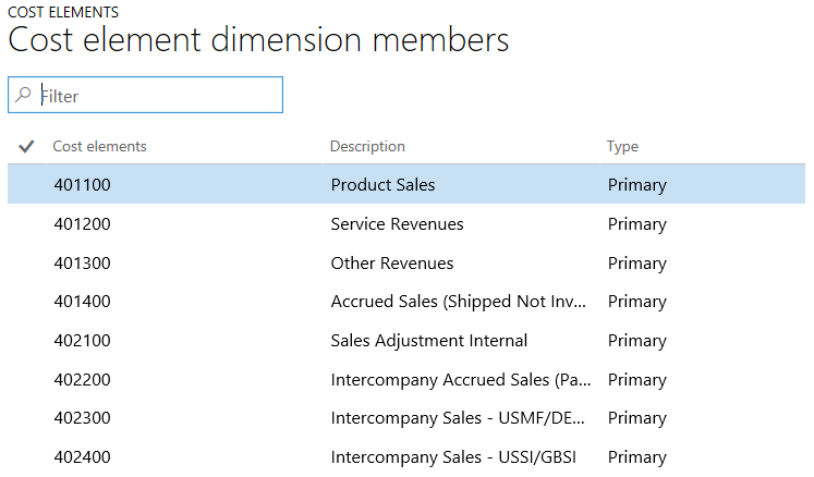De primaire kostenelementen vertegenwoordigen de stroom van kosten van financiƫle boekhouding naar kostprijsboekhouding. De kostenelementenstructuur correspondeert met de winst- verliesrekeningstructuur in het grootboek, waar een kostenelement kan corresponderen met een hoofdrekening. Niet alle hoofdrekeningen hoeven als kostenelementen te zijn vertegenwoordigd, afhankelijk van de behoeften van het bedrijf. Voorbeelden van primaire kostenelementen zijn onder meer: