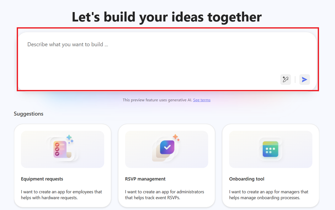 De nieuwe vibe-ervaring in Power Apps combineert plannen, gegevensmodellen en apps in één ontwerpoppervlak. Deze geïntegreerde aanpak minimaliseert afleidingen en houdt u gefocust op het efficiënt bouwen van oplossingen.