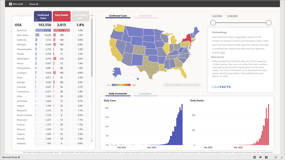 Dit interactieve rapport verzamelt gegevens van de Centers for Disease Control and Prevention (CDC) en staats- en lokale gezondheidsinstellingen. Gegevens op countyniveau worden bevestigd door rechtstreeks naar staats- en lokale instanties te verwijzen (link).
