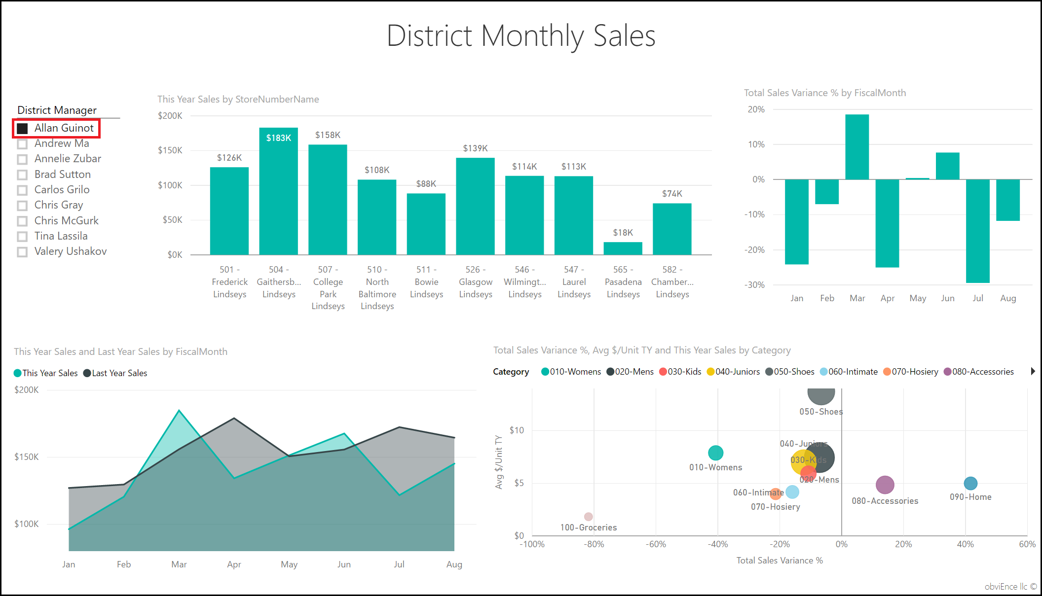 Selecteer Allan Guinot in de District Manager-slicer linksboven.