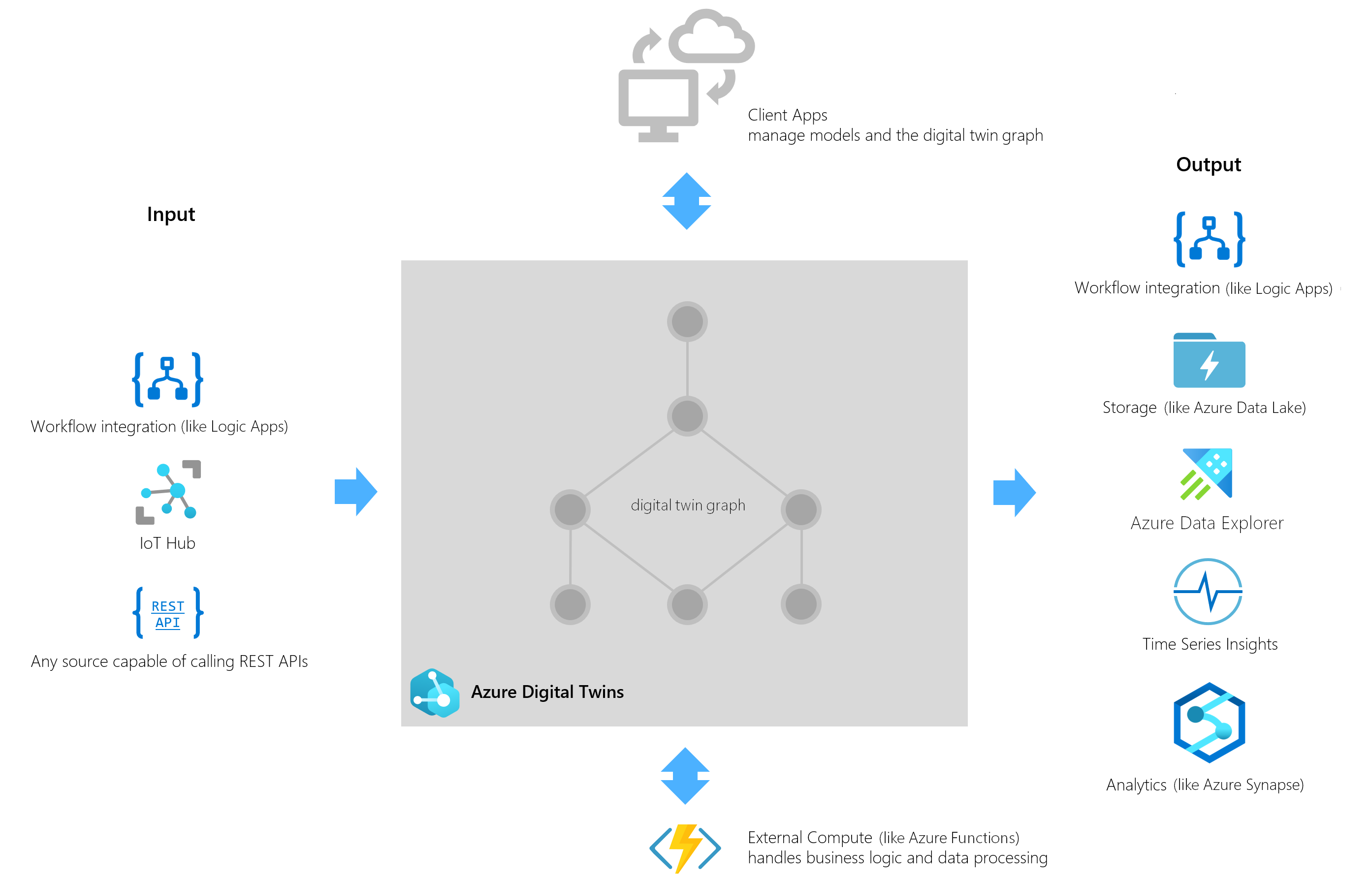 Azure Digital Twins wordt vaak gebruikt in combinatie met andere Azure-services als onderdeel van een grotere IoT-oplossing.