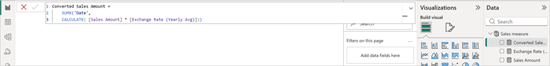 Converted Sales Amount = SUMX('Date', CALCULATE( [Sales Amount] * [Exchange Rate (Yearly Avg)]))De verkoopmeetwaarden meetgroep moeten er nu als volgt uitzien: