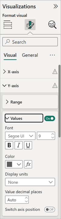 Hoewel dit niet vereist is, kunt u visuele eigenschappen wijzigen om een mooier rapport te maken. Gebruik de knop Visual opmaken in het deelvenster Visualisaties om de volgende wijzigingen aan te brengen: