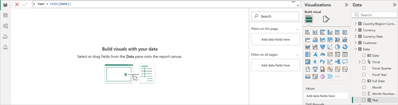 Year = YEAR([Date])en druk vervolgens op Enter.