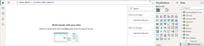 Sales Amount = SUM(Sales[Sales Amount])Dit ziet er als volgt uit: