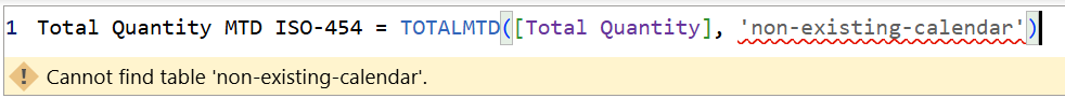 Dit laat zien dat context behouden blijft voor kolommen die PARALLELPERIOD niet in de agenda zijn gelabeld, maar dat de context wordt gewist voor de kolommen die zijn getagd als tijdgerelateerd. FullLastYearQuantity gebruikte de Gregoriaanse kalender waar IsWorkingDay niet in de agenda was gelabeld, terwijl FullLastYearQuantityTime Related de GregorianWithWorkingDay-kalender gebruikte waarbij IsWorkingDay werd gelabeld als tijdgerelateerd. Alle time intelligence-functies behalve DATEADD en SAMEPERIODLASTYEAR gedragen zich op deze manier.