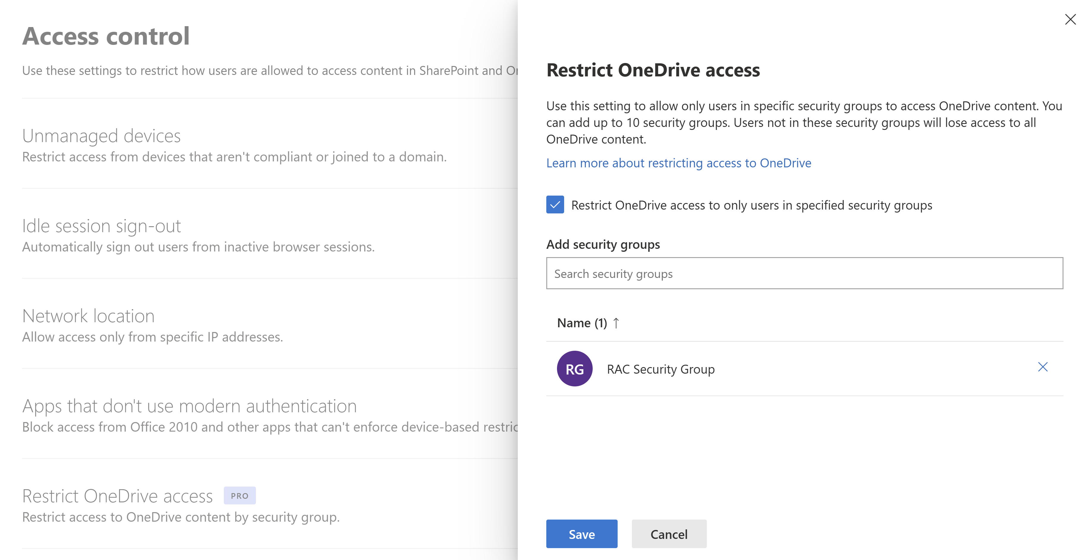 Add the security groups (maximum of 10) you want to be able to use OneDrive.