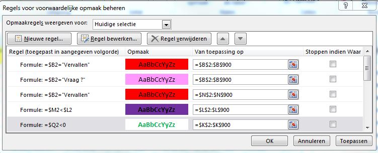 En als ik dit een aantal keer doe dan heb je op een gegeven moment een hele lange lijst in de voorwaardelijk opmaak…Bestand wordt traag en loopt vast!