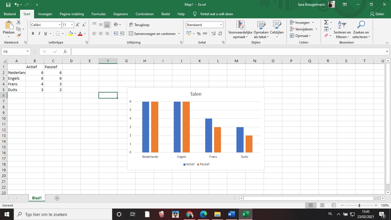 Zet de formule ergens in je tabblad en voer deze door over zes rijen. Dit lijstje kun je nu in je grafiek gebruiken.