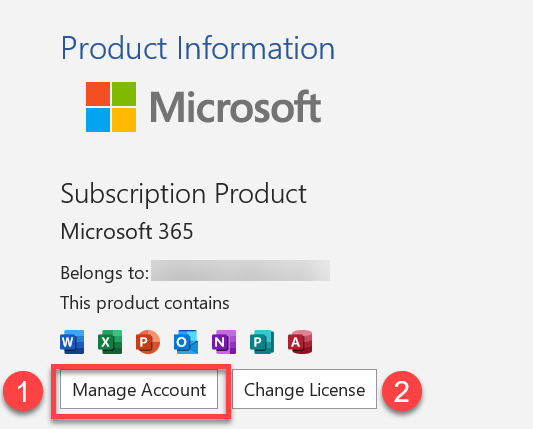 #2 - klik op <Change License> om er zeker van te zijn dat het voor het actieve MS 365-abonnement is