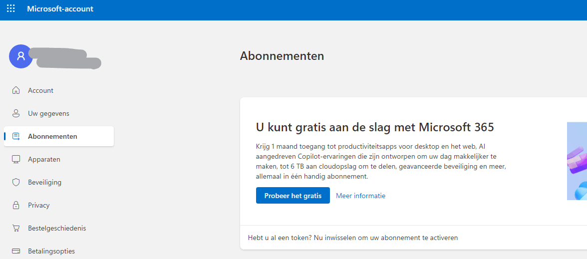 Hebt u onlangs een Microsoft Business- of Education-account gemaakt? Als u een abonnement hebt, kunt u zich aanmelden bij uw Microsoft-account en het abonnementsscherm controleren om te zien of er productinformatie beschikbaar is, en u kunt annuleren voor een terugbetaling: Microsoft-account | Abonnementen