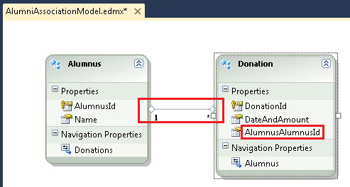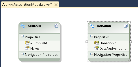 Create another entity the same way and name it Donation. Change the Id property to DonationId and add a scalar property named DateAndAmount.