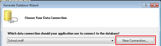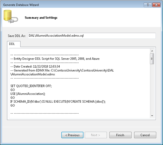 This launches the Generate Database Wizard. (If you see warnings that indicate that the entities aren't mapped, you can ignore those for the time being.)
