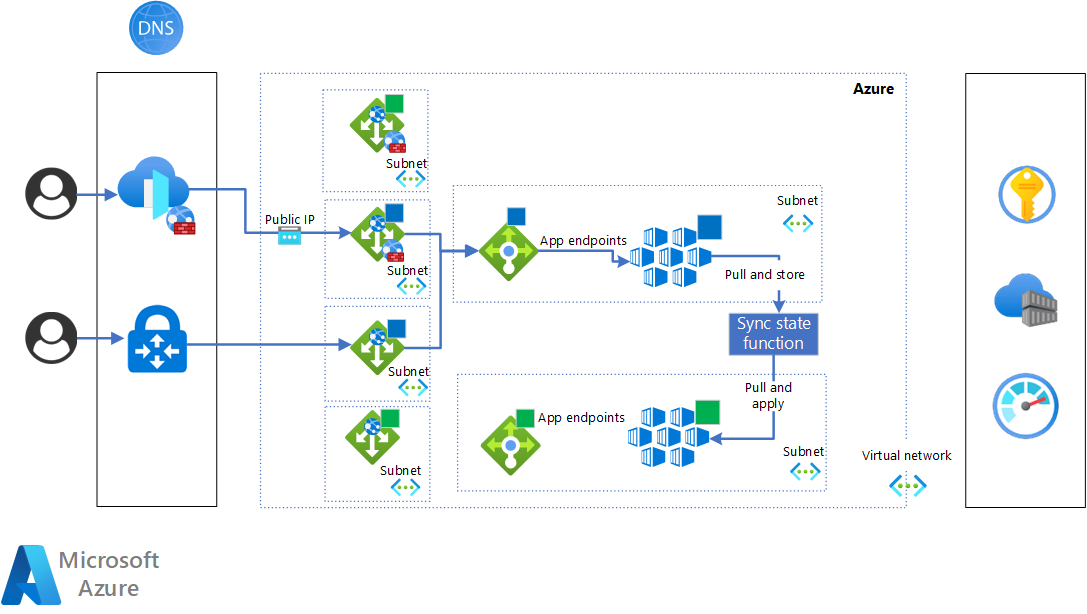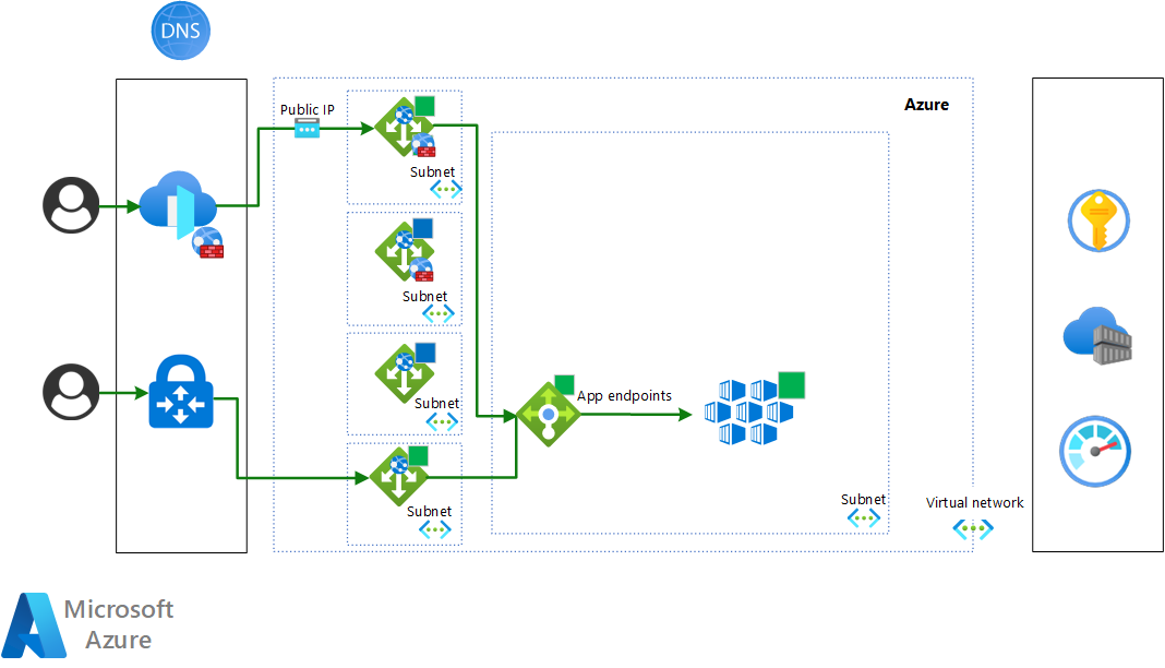 - Verbinding met back-upservices zoals Monitor, Container Registry en Key Vault.