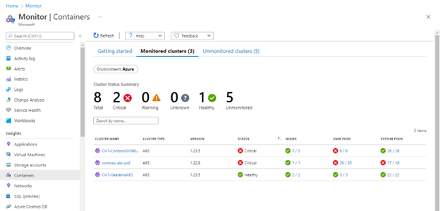 Niveau 3 is toegewezen aan de Kubernetes-objecten en -toepassingen die standaard worden geïmplementeerd in AKS, zoals omsagent en kube-proxy. Voor deze controle kunt u de inzichtenweergave van Monitor gebruiken om de status van de AKS-implementaties te controleren: