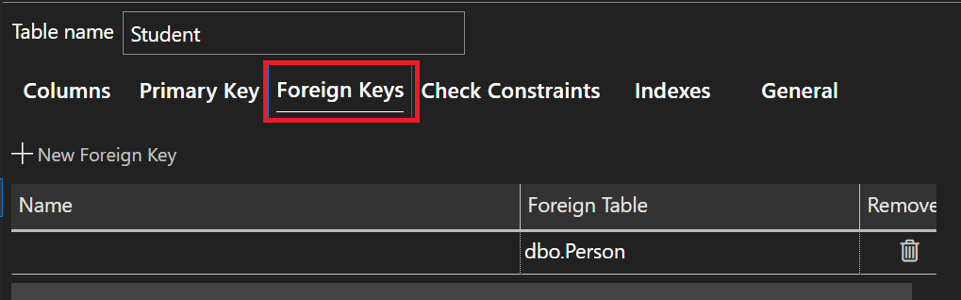 Zorg ervoor dat u de instellingen voor refererende sleutel voor de studententabel configureert, zoals hieronder wordt weergegeven: