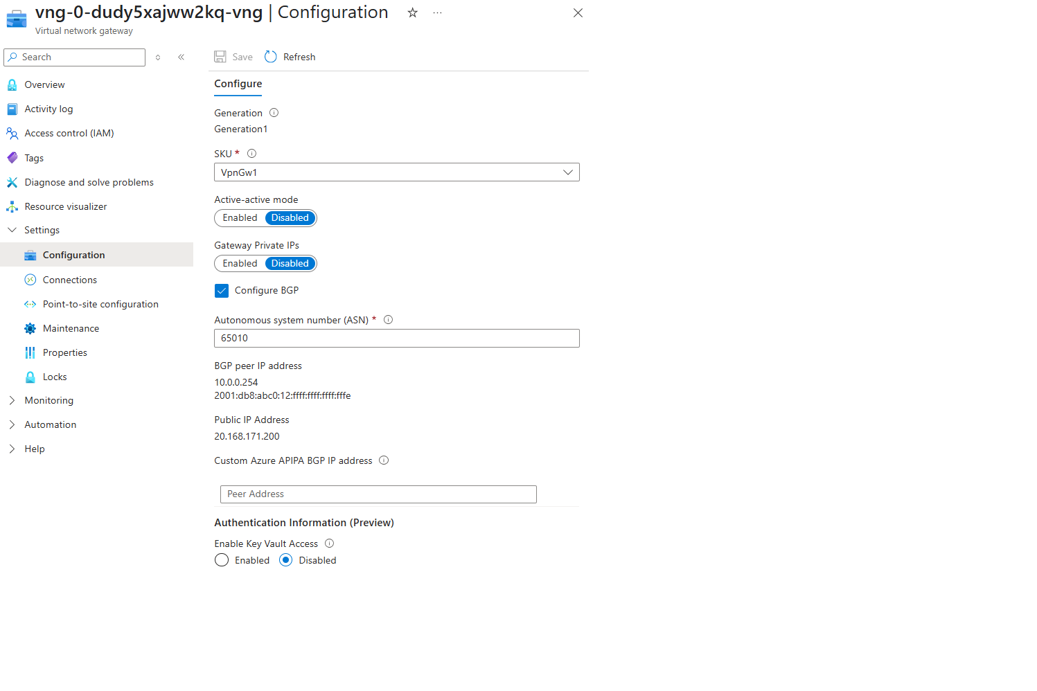 Dit artikel helpt u bij het configureren van IPv6 in dubbele stack voor VPN Gateway met behulp van Azure Portal. Configuratiestappen zijn vergelijkbaar met de bestaande IPv4-configuratie. U kunt ook PowerShell of CLI voor deze configuratie gebruiken. Als u PowerShell of CLI gebruikt, kunt u IPv6-adressen samen met IPv4-adressen configureren.